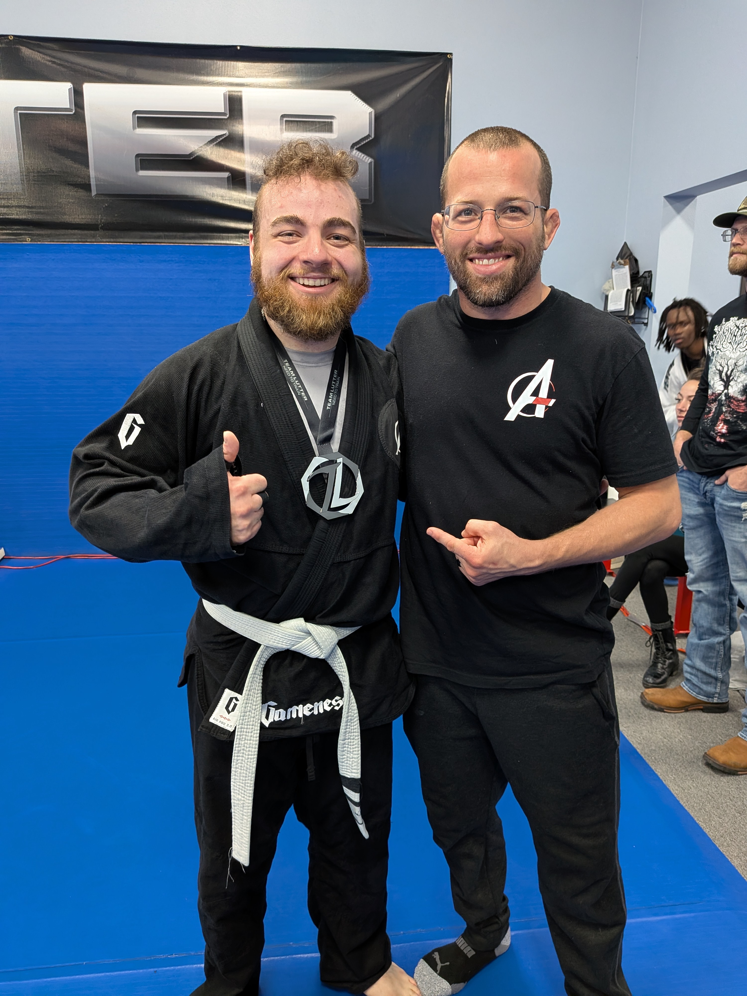 It turns out that he has D-1 wrestling experience, which disqualified him after he won the bracket. So the guy he beat in the final is in the #1 spot on the podium. The guy who I would have originally shared 3rd place with got bumped to 2nd, but didn't show up.